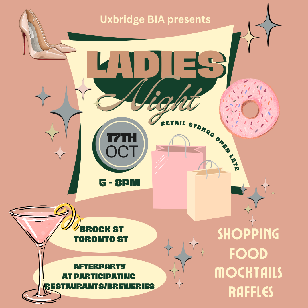 It's Ladies' Night! Join us in downtown Uxbridge for an exciting evening of shopping, discounts, and sweet treats from your favourite women owned local businesses!
