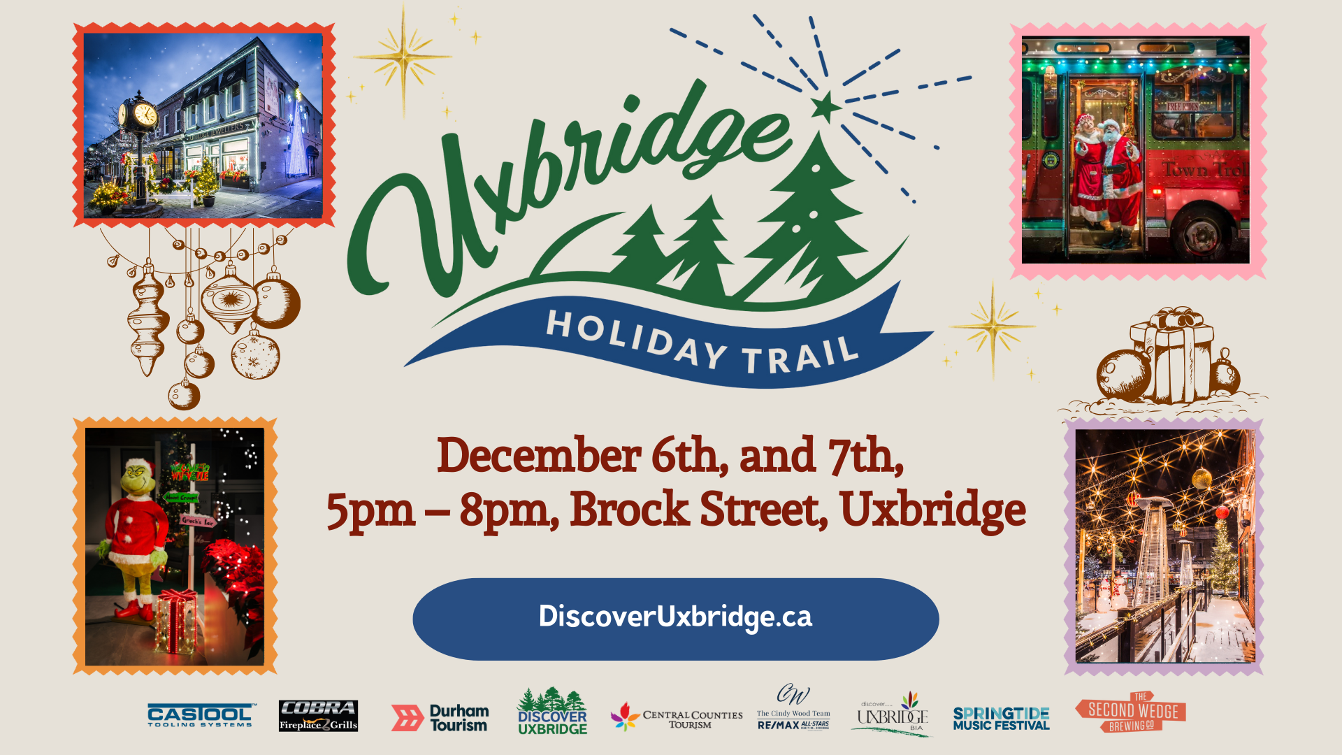 Get into the holiday spirit with Uxbridge's annual Holiday Trail! Shop, eat, drink, play, and enjoy live music at the fun and festive event on the evenings of Friday December 6th and Saturday December 7th, from 5pm to 8pm! Take a ride on the town trolley to the festival of lights, take photos with Mr. and Mrs. Claus, and celebrate in the nostalgia of this year's theme, vintage holidays!